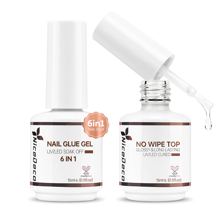 Nicedeco Gel Nail Polish 6 in 1 Nail Glue Gel and No Wipe Top Coat Set