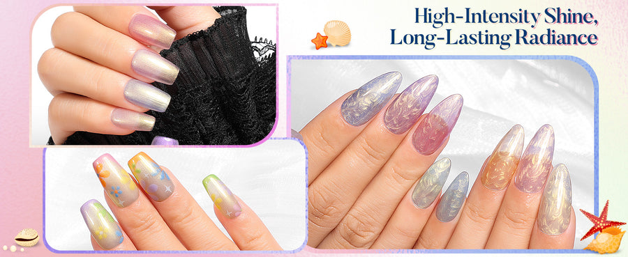• Package Includes: 1 x Gel Nail Polish. (Volume: 15 ml / 0.5 fl.oz.e) Mermaid Gel Polish with dual-tone shimmer effect creates dazzling iridescent nails that shift between two elegant shades in one bottle for a unique manicure.