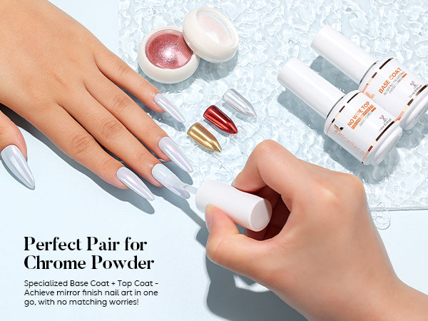 - Base Top Coat for Chrome Nail Powder: Nicedeco base coat & no wipe top coat gel are specially formulated to maintain the mirror effect of chrome nail powder without affecting color, ensuring a long-lasting shine that keeps your nails looking beautiful.