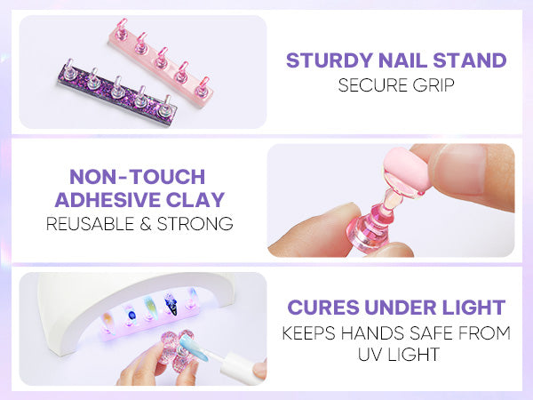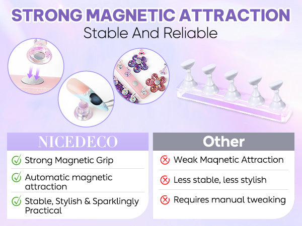 • Magnetic Nail Holder: Easily attach nail tips to the magnetic crystal holder for a tidy and organized display, ideal for painting and designing press-on nails, gel polish, acrylics, nail rhinestones & charm application.