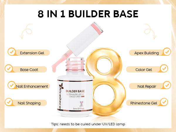 - Building Gel for Nails: Achieve the perfect salon-grade nails at home with Nicedeco Builder Base gel polish. Suitable for building apex, nail extension, nail strengthener, enhancing, sealing nail art, cover unevenness, rhinestone gel. It is ideal for nail art DIY and nail salon.