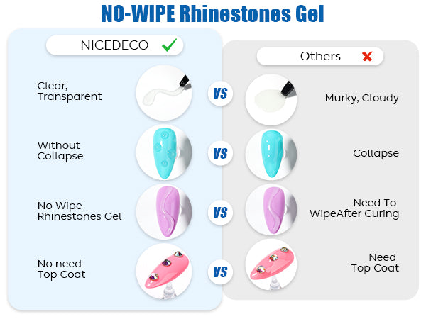 • No Wipe Technology: Comparing to traditional nail art glue, our no wipe rhinestone glue eliminates the need for wiping off excess glue, preventing spills and messes.