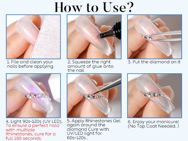 • Nail Lamp Required: U V or Led Nail Lamp is required for curing the glue and securing the gems in place. Follow the simple steps for long-lasting nail charms.