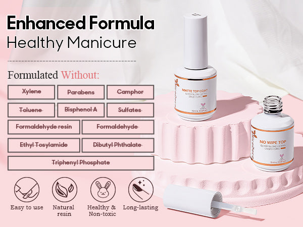 • Safe and Gentle Formula: Our top coat gel for nails is cruelty-free, vegan, low odor, making it a non-toxic and safer option for your nails. Our formula is gentle, ensuring that you can get beautiful nails without worry.